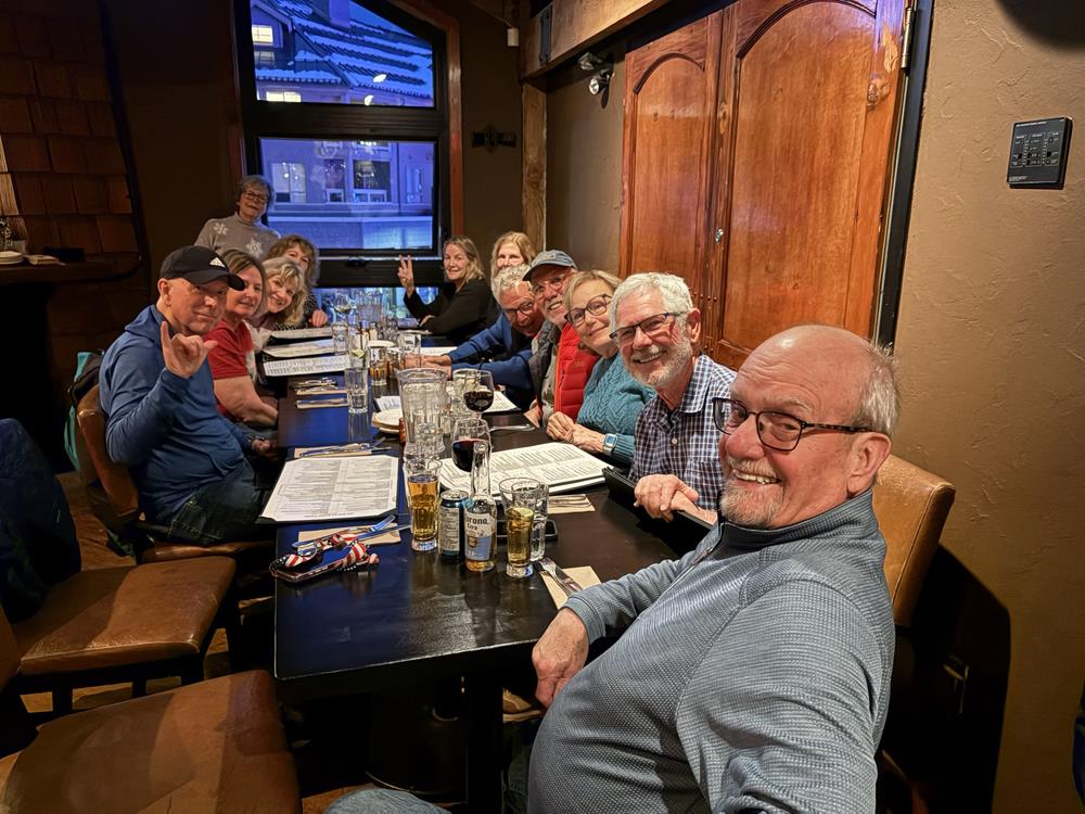 Sadly this is our last ski day here. It was projected to be another bluebird day, but the clouds and wind obscured the sky. Visibility was variable. Apparently the 49ers have made quite an impression on the tour guides who recognized the “group from Sacramento” by our ski poles as we assembled for the day’s tour despite the wind and inability to see anything. They took the group down the Olympic downhill run named after Olympic skier, Dave Murray. The run is steep and fast until - suddenly engulfed in a cloud - you couldn’t even see the tips of your skis. The guide found some Goldilocks bumps and sunshine before the low clouds returned. Everyone made it safely down the hill for hot tubbing, shopping, happy hour and packing.